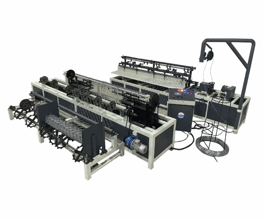 The Fully Automatic Double Wire Chain Link Fencing Machine is engineered to produce high-quality and durable chain link fencing with complete automation. Designed for high-speed production, it uses double wire feeding technology to ensure strong, uniform, and precise mesh output. Both vertical and cross wires are automatically fed, woven, and knuckled or twisted, reducing manual labor and increasing productivity. This machine is ideal for manufacturing fencing used for security boundaries, playgrounds, farms, residential & industrial premises, airports, railways, and sports grounds.